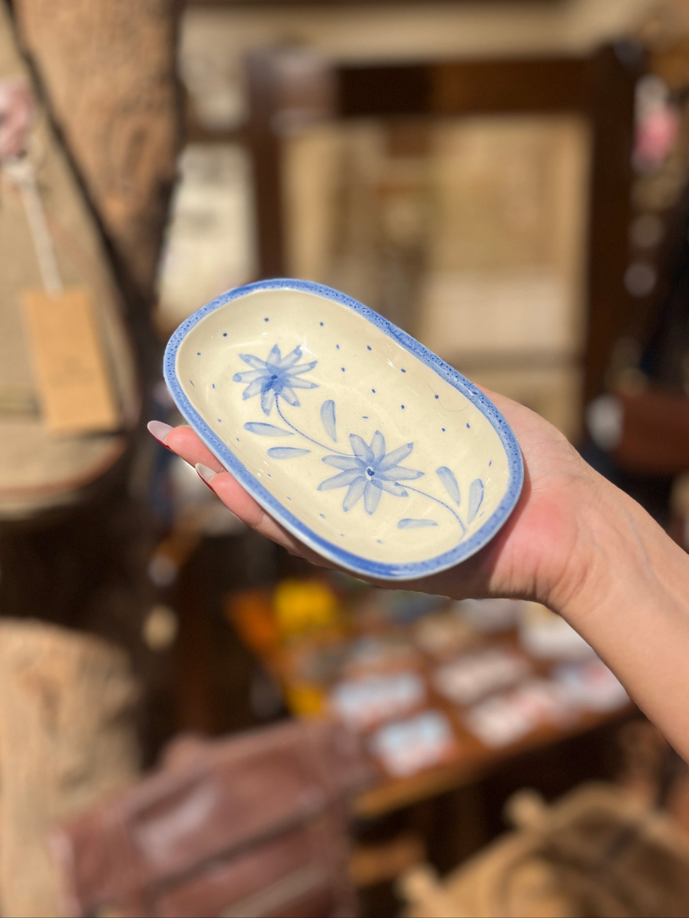 Fresh, calming, and delicately detailed, the Lagoon Trinket Tray is inspired by soft blue florals and everyday quiet moments. Crafted in ceramic with a glossy finish, this tray features hand-painted blue flower motifs that bring a gentle pop of colour to your space. Its compact size and softly rounded edges make it perfect for holding rings, earrings, keys, or little keepsakes.